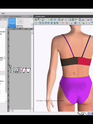 This size inclusive swimwear collection is fully developed using Optitex 3D pattern making software. Initially drafted patterns in this software were vitually sewn and fit on a true-to-life virual model. Utilizing this 3D process to analyze fit with springs and heat maps lead to live fit and pattern corrections that resulted in accurate first sewn samples. This collection features a hand designed print created using Adobe Illustrator which was directly applied to the digital pattern pieces and printed onto swimwear fabric. The eccentric details that I discovered among found magazine portraits made me think more about individual style and personal choices. I was inspired to imagine unique life stories for each of the individuals pictured. Throughout this process, I discovered how freeing it is to unapologetically live out her own story. I challenged myself to design a collection of boundlessly creative and artistic swimwear that pays special attention to intricate construction details and precision fit. This playful and optimistic collection offers my customer the complete freedom to be her unique self by offering adjustable fit solutions that suit a variety of body types.